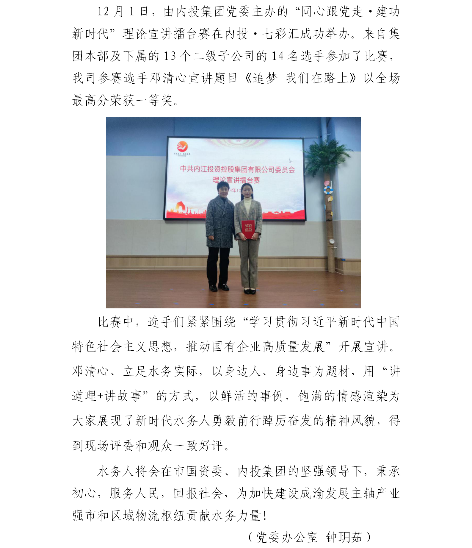 砥礪奮進(jìn)水務(wù)人,同心共筑新時代——水務(wù)公司榮獲內(nèi)投集團(tuán)理論演講擂臺賽一等獎