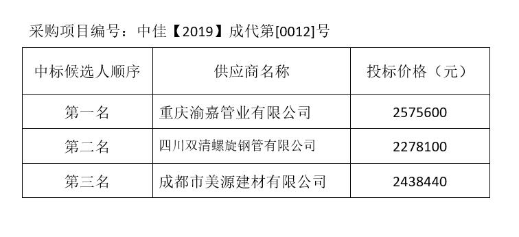 內(nèi)江市水務有限責任公司螺旋鋼管管材及管件采購項目評標結(jié)果公示