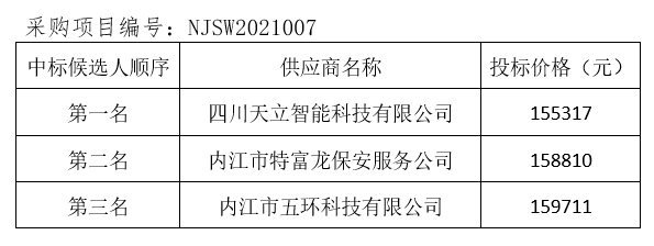 內(nèi)江市污水處理有限責(zé)任公司監(jiān)控系統(tǒng)升級改造項目評標(biāo)結(jié)果公示
