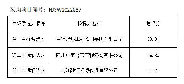 內(nèi)江市水務(wù)有限責(zé)任公司招標(biāo)代理機(jī)構(gòu)服務(wù)供應(yīng)商采購項(xiàng)目評標(biāo)結(jié)果公示