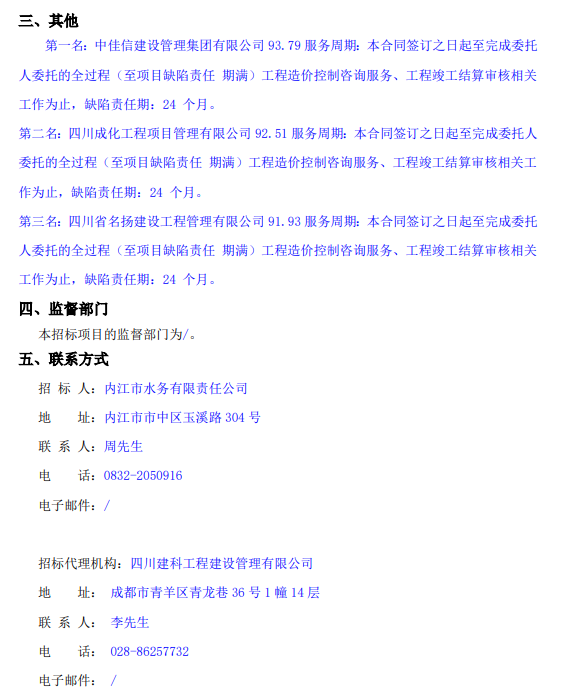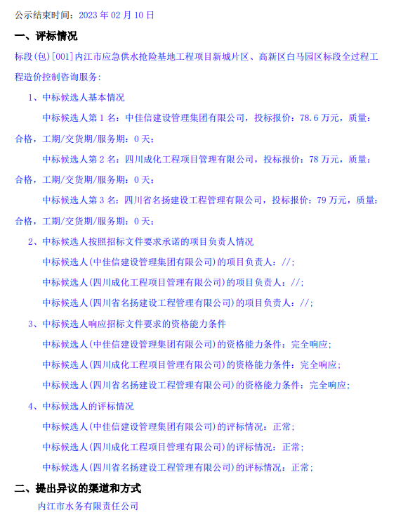 內(nèi)江市應(yīng)急供水搶險(xiǎn)基地工程項(xiàng)目新城片區(qū)、高新區(qū)白馬園區(qū)標(biāo)段全過(guò)程工程造價(jià)控制咨詢服務(wù)中標(biāo)候選人公示