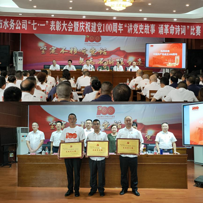 6月30日下午,在中國(guó)共產(chǎn)黨成立100周年之際,為表彰先進(jìn),弘揚(yáng)正氣,樹立典型,進(jìn)一步激勵(lì)各基層黨組織和廣大黨員履職盡責(zé),擔(dān)當(dāng)有為,推動(dòng)企業(yè)持續(xù)向好發(fā)展。市水務(wù)公司黨委舉辦“七一”表彰大會(huì)暨慶祝建黨100周年“講黨史故事 誦革命詩(shī)詞”比賽。市國(guó)資委調(diào)研員梁素蓉,內(nèi)投集團(tuán)黨委委員、紀(jì)委書記曹德華出席會(huì)議,公司領(lǐng)導(dǎo)班子成員、各支部黨員代表近132余人參加會(huì)議。會(huì)議由黨委副書記、總經(jīng)理李濤主持。