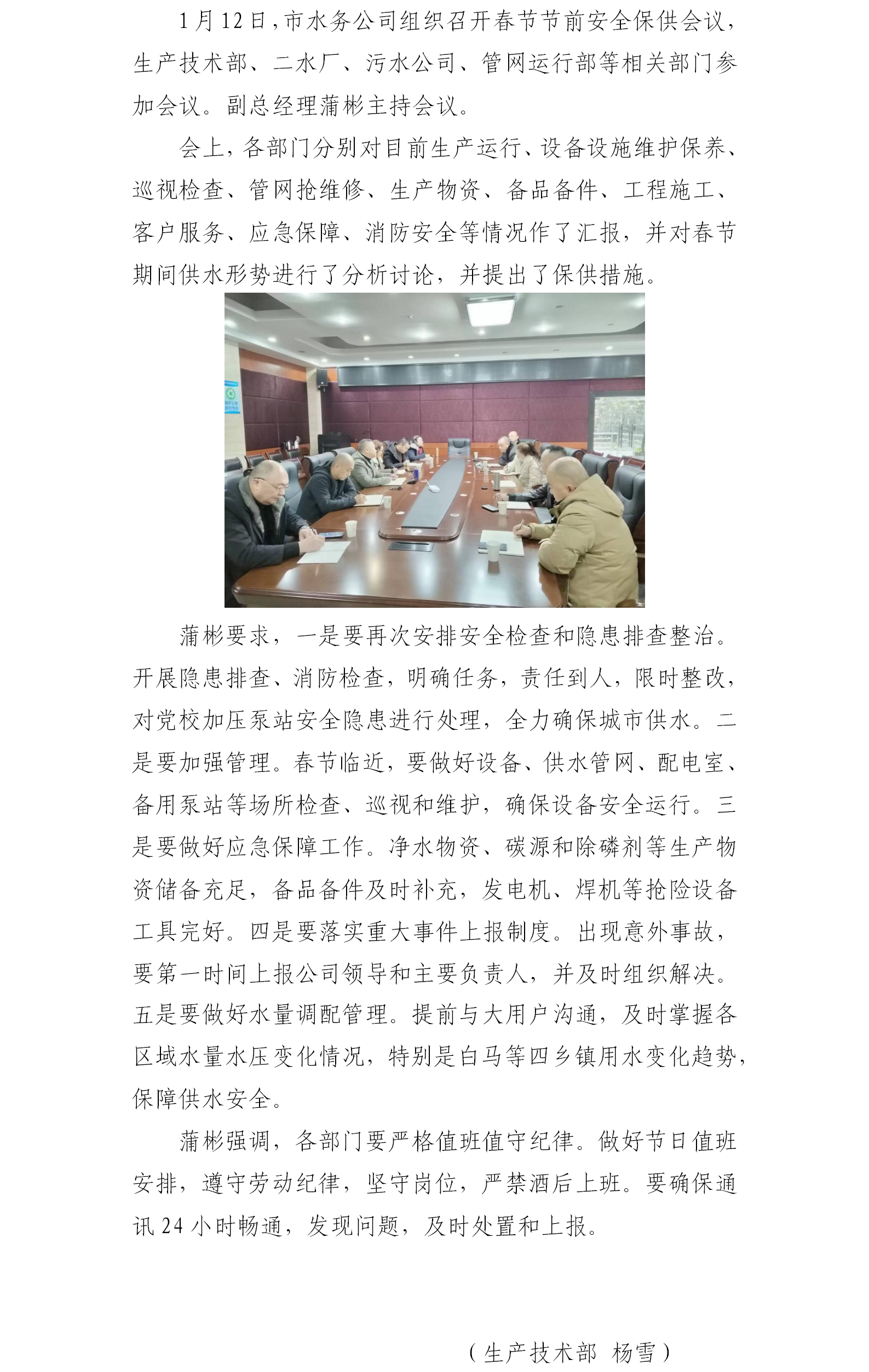 市水務(wù)公司召開(kāi)春節(jié)前保障供排水安全生產(chǎn)工作會(huì)議