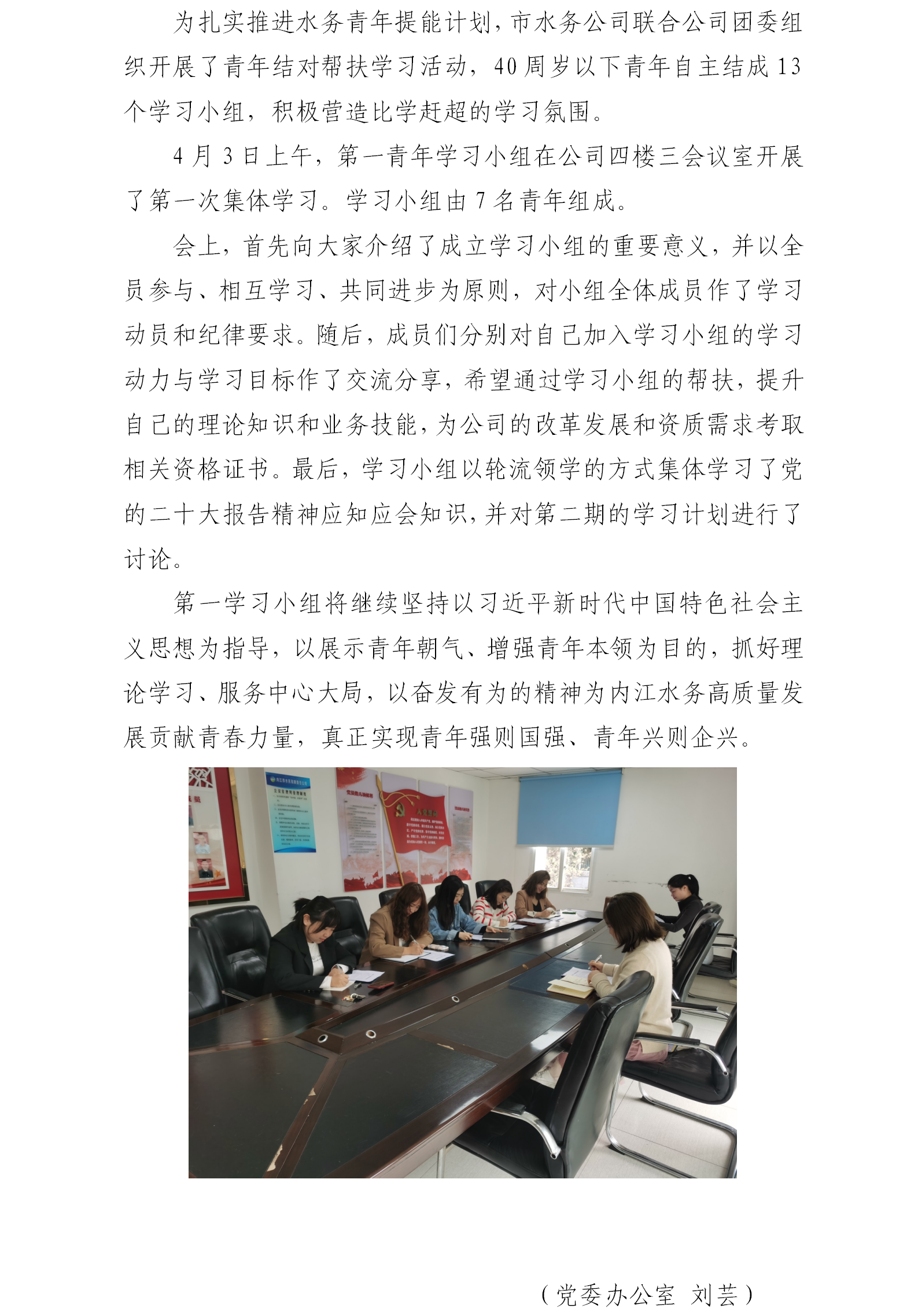 市水務(wù)公司青年幫扶學(xué)習(xí)第一學(xué)習(xí)小組開展第一次集體學(xué)習(xí)