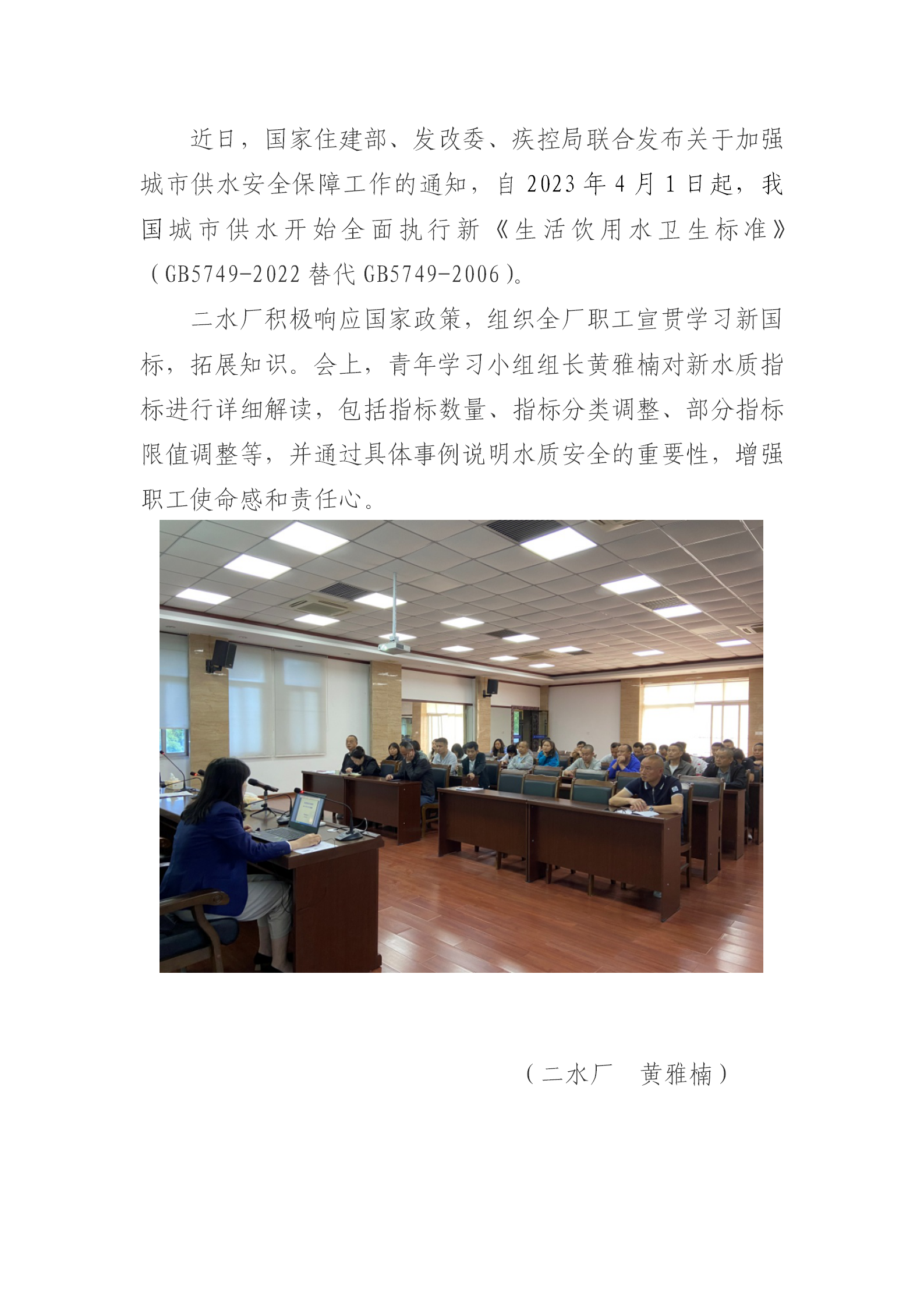 二水廠組織學(xué)習(xí)生活飲用水新國標(biāo)