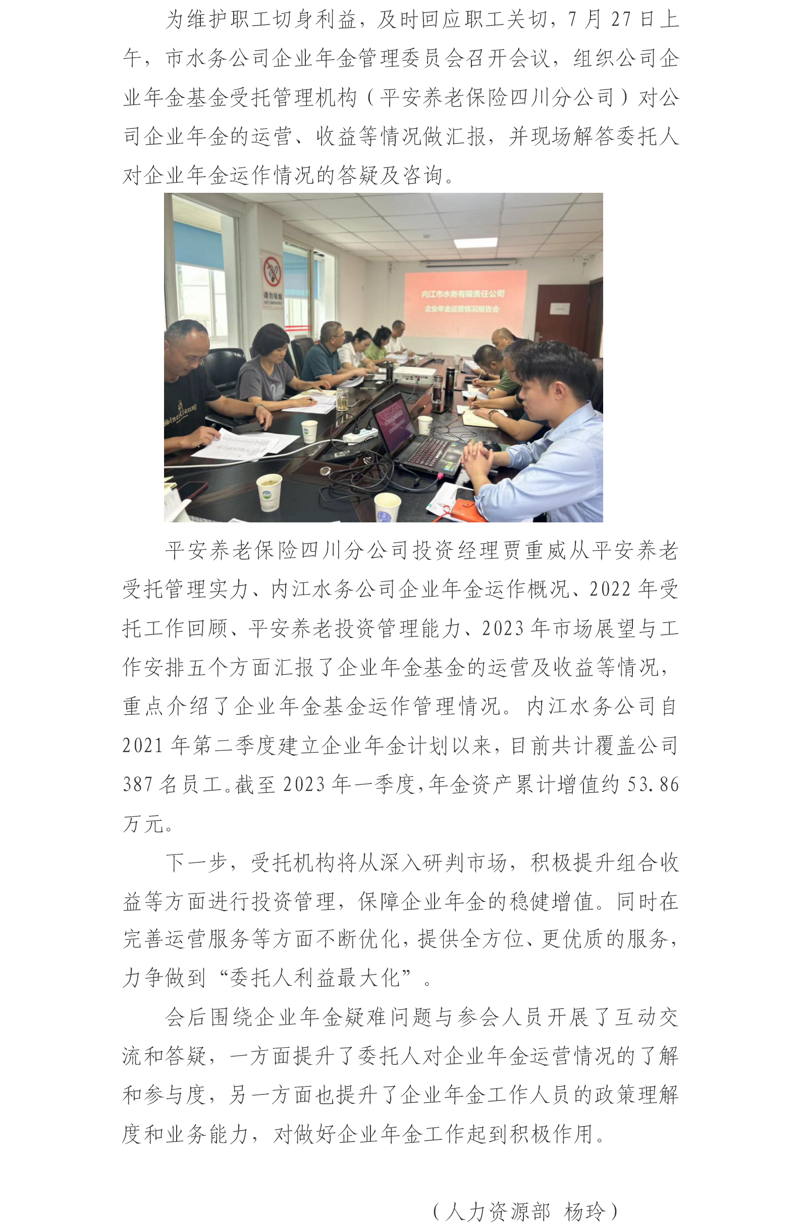 市水務(wù)公司召開企業(yè)年金運(yùn)營情況報(bào)告會(huì)