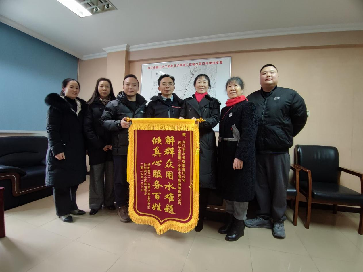 豪鵬二供公司黨支部積極踐行便民舉措、主動(dòng)作為的舉動(dòng),贏得了世紀(jì)濱江業(yè)委會(huì)及物業(yè)的高度認(rèn)可,并送錦旗向豪鵬二供公司表達(dá)誠(chéng)摯的感謝與敬意。
