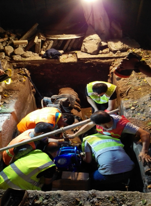 在管網(wǎng)規(guī)劃管理部、物資供應部、豪盛管道安裝公司及工會等部門的緊密配合下,5月17日晚22時,管網(wǎng)運行部按改造實施方案對平安路兩側3臺蝶閥進行了更換。為縮短停水時間,施工前管網(wǎng)運行部組織召開了兩次施工分析會,制定了工作方案,并對施工現(xiàn)場提前組織開挖,設置安全圍擋、照明等安全設施,為順利實施蝶閥更換做好充分準備。施工中,維修人員們克服深夜疲勞、操作場地狹小等不利因素,特別是楊孝成,鄧軼峰、劉超、程建軍等冒著高溫天氣及氧焊的熱浪,在弱電管線交錯縱橫的狹窄空間里拆卸生銹螺栓,安裝更新蝶閥。經(jīng)過7個多小時連續(xù)作業(yè),在18日凌晨5時順利完成此次改造工作,比預期通水時間提前1個小時,保證了周邊用戶正常用水。