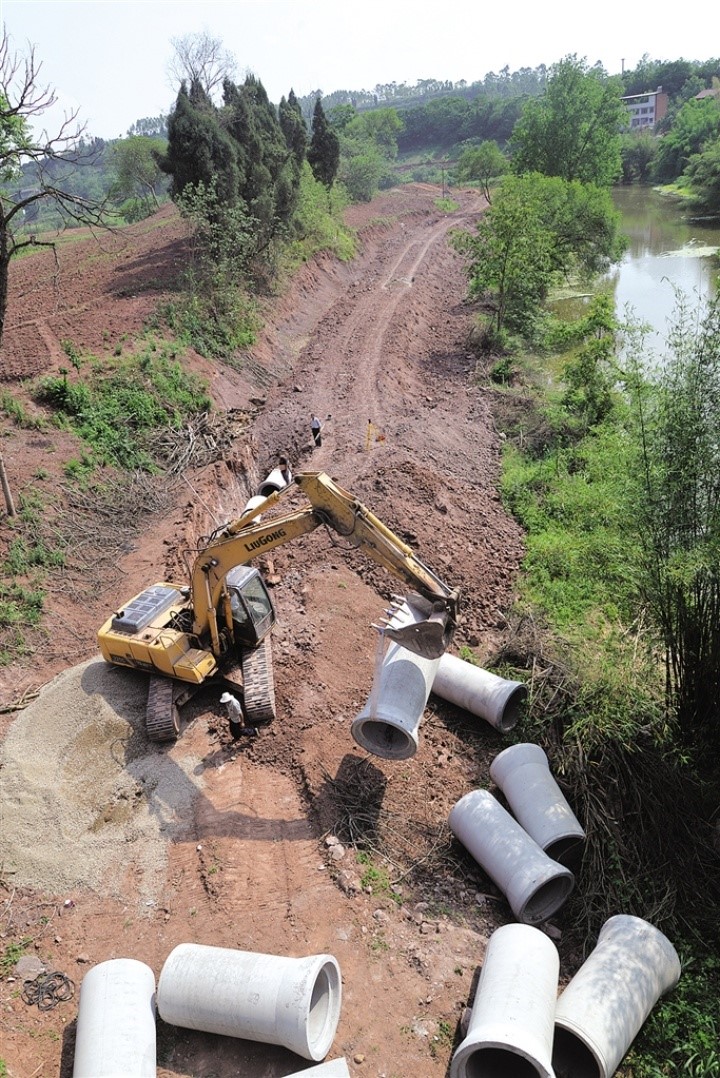 日前,記者來到位于東興區(qū)新江街道辦事處清流村(沱江、清流河、小青龍河交匯處),看到不少工人在工地上忙碌,有的開著挖機(jī)平場(chǎng)地,有的在挖溝槽埋管網(wǎng),有的在用貨車運(yùn)輸土方,好不熱鬧。