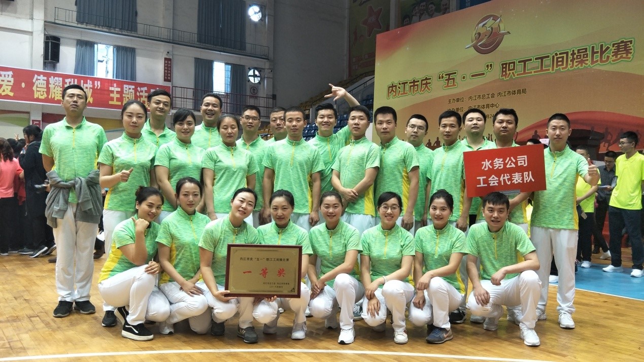 我司33名隊員以飽滿的精神、剛勁的動作詮釋了工間操的時代氣息,展示了水務職工健康向上、團結(jié)協(xié)作的精神風貌。經(jīng)過緊張激烈的角逐,我司取得總分第五名的成績,榮獲一等獎。