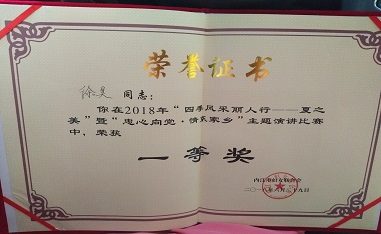 在內(nèi)江婦聯(lián)組織的2018年“四季風采麗人行—夏之美”暨“忠心向黨.清溪家鄉(xiāng)”主題演講比賽中,我司推薦的選手徐昊代表國資委參賽,獲得一等獎。