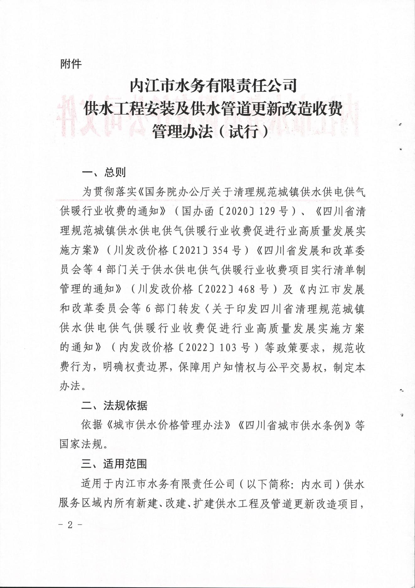 內(nèi)江市水務(wù)有限責任公司供水工程安裝及供水管道更新改造收費管理辦法(試行)
